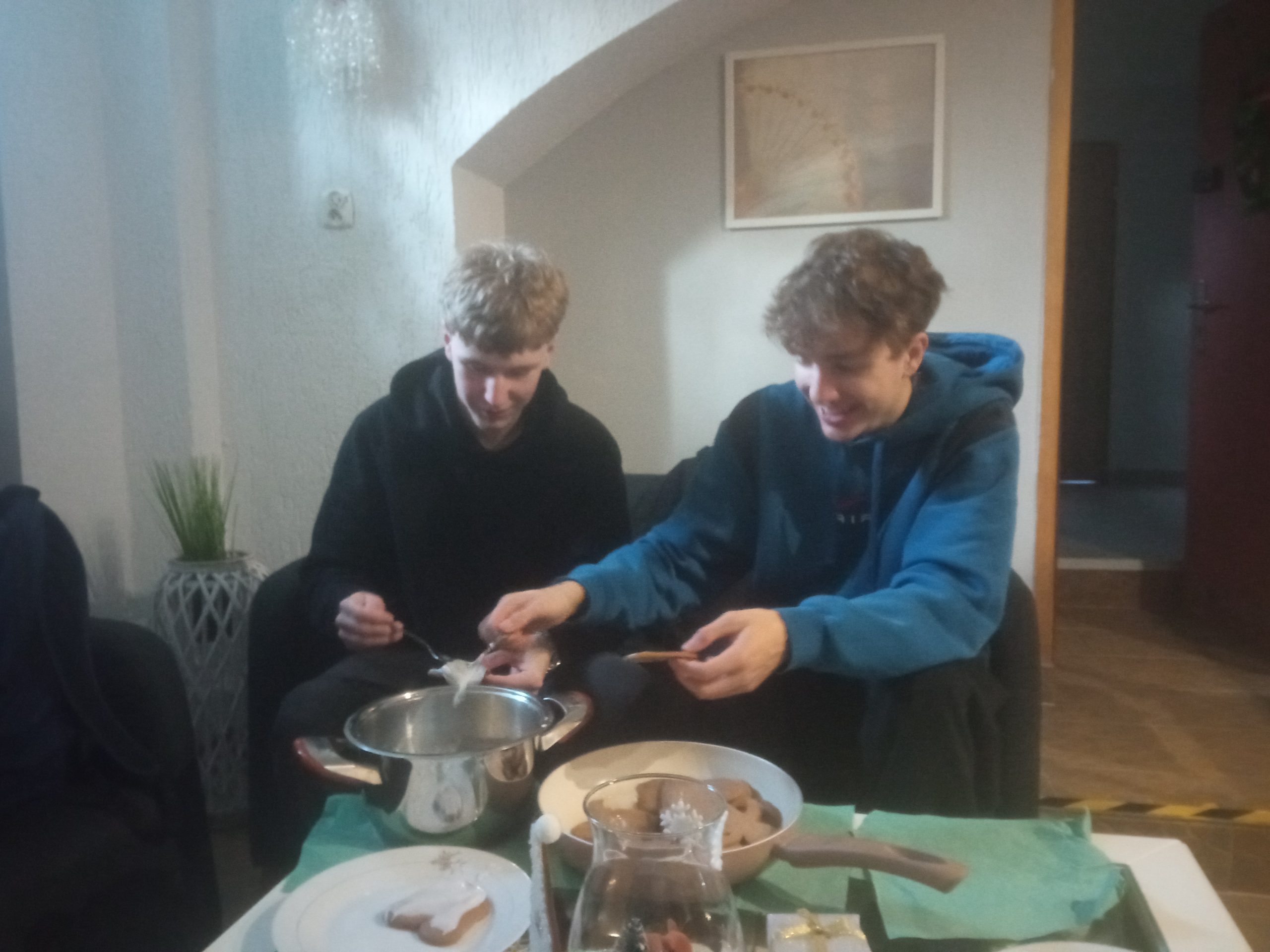 15 grudnia w naszej szkole wszyscy mogli poczuć, że święta zbliżają się wielkimi krokami. Wszędzie unosił się kuszący zapach pierniczków, które przygotowała klasa IIa. Niektórzy twierdzą, że część z nich zniknęła w niewyjaśnionych okolicznościach. Podejrzewa się degustację, która wymknęła się spod kontroli. Najładniejsze pierniczki, pięknie polukrowane i ozdobione trafiły na Wigilię szkolną i zostały wręczone nauczycielom jako słodki, własnoręcznie przygotowany świąteczny upominek. Uczniowie w taki właśnie sposób postanowili wyrazić swoją wdzięczność dla nauczycieli.