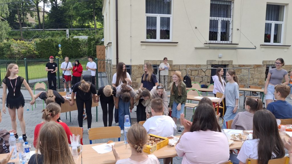Później spędzaliśmy czas na sportowo – sześciobój, czyli nasza lokalna wersja dziesięcioboju, tylko bardziej szalona i zabawna. Było bieganie, skakanie, rzucanie, czasem celnie, czasem nie, ale zawsze z uśmiechem.