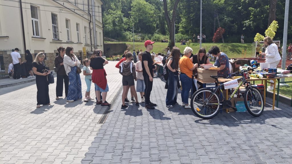 Nie zabrakło też gry losowej z atrakcyjnymi nagrodami – największe  emocje wzbudziło losowanie nagrody głównej – roweru, który wyjechał z festynu prowadzony przez szczęśliwą Zuzię.